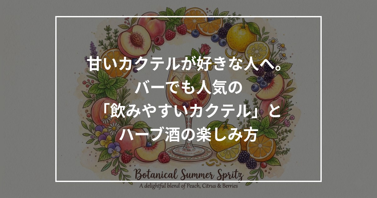 この記事では、甘いカクテルの定義や人気の理由から、バーで失敗しない定番の3選、自宅でも美味しく楽しむためのプロのコツ、そしてワンランク上の魅力を引き出す「ハーブ酒」の楽しみ方まで分かりやすく解説します。お酒に詳しくない方はもちろん、「飲みやすくておしゃれな一杯を探している」という方にもぴったりの内容です。
