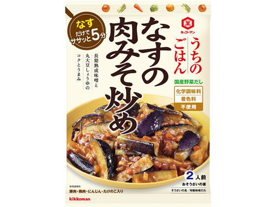 ご指定の人気メーカー、キッコーマンのうちのごはんシリーズ「なすの肉みそ炒め」はいかがでしょうか?なすが3本あれば、フライパン1つで簡単においしいなすの肉みそ炒めができるので、オススメいたします!