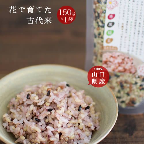 特定の花を肥料にし、雑草を抑えることで肥料や除草剤を削減して育てられた山口県産100%の古代米です。クロロフィルを含む緑米・アントシアニン豊富な黒米・タンニンたっぷりの赤米にギャバを含む発芽玄米を配合しています。白米1合に大さじ1杯を加えて炊くだけ、というわかりやすい割合が気に入っています。