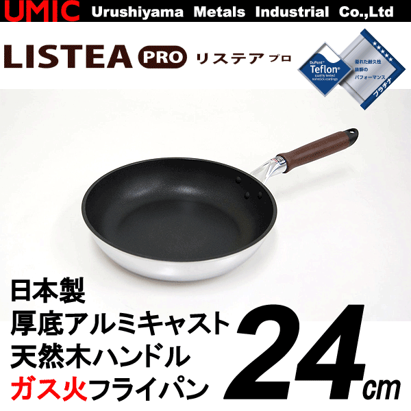日本製のガス火専用24cmフライパンです。内側はテフロンプラチナ加工で強度があり外側は厚底で熱変形も起きにくいという内外両面から耐久性に優れているフライパンです。