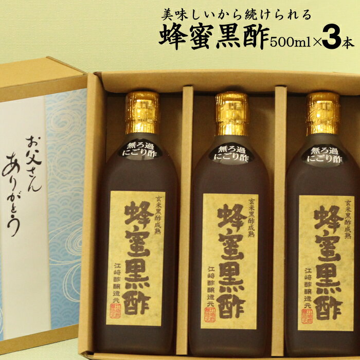 無濾過にごり酢の蜂蜜黒酢です。500ml×3本セット。高級感がありますし、ヘルシーな豊かな風味が楽しめますよ。