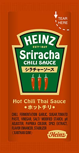 ハインツのシラチャーソースです。ボトルではなく、小さなパウチ袋に入っているのでソースを出しすぎてしまって料理を台無しにしてしまうことがありません。