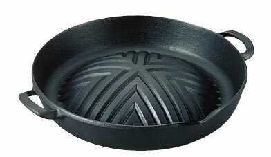 ジンギスカン用の鍋です。こちらは深さがあるので、お野菜をたっぷり入れられますよ。鉄製なので、使用前は油を染みこませてくださいね。