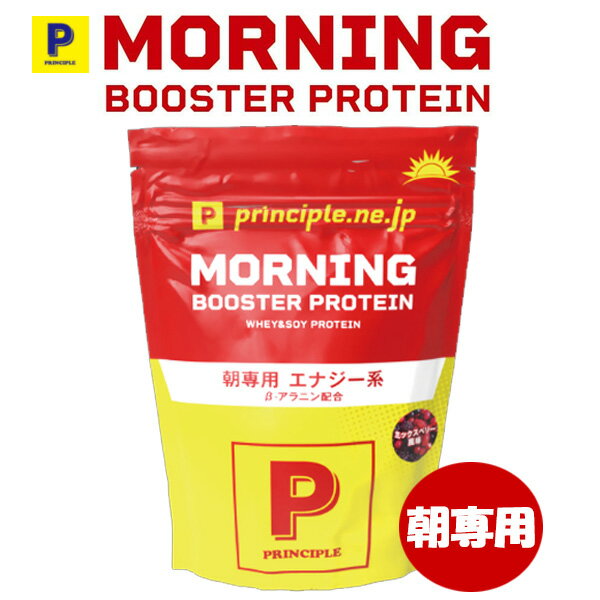 プリンシプルの朝専用プロテイン、モーニングブースターです。筋力アップに効果のあるβ-アラニンやL-シトルリンを配合しており、1食分で11gのタンパク質が摂れ、身体作りにおすすめのプロテイン。朝やトレーニング前でも飲みやすいよう、少なめの150ml前後の水や牛乳によく溶けるよう作られています。すっきりと飲みやすいミックスベリー風味です。