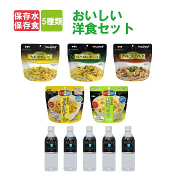 10年の長期保存ができるドライカレー・えびピラフ・パスタ・10年保存水・カムイワッカ麗水500ml×5本がセットになっています。麗水を入れるだけでできたてのような味になります。種類があるので緊急のときでも飽きずに食べられます。