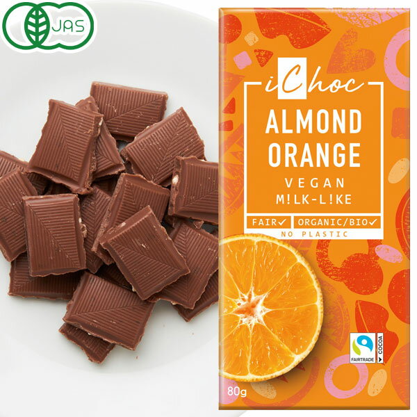 iChoc オーガニックチョコレート・アーモンド&オレンジは、ドイツ生まれのヴィーガンチョコレートでして、なめらかで甘すぎず、チョコレートの持つコクやオレンジピールが際立ちますのでお勧めしたいです。