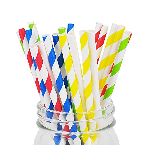 紙ストローで、カラフルさがあるので、お子さんが喜んでくれそうですね。500本入りで、コスパも良いです