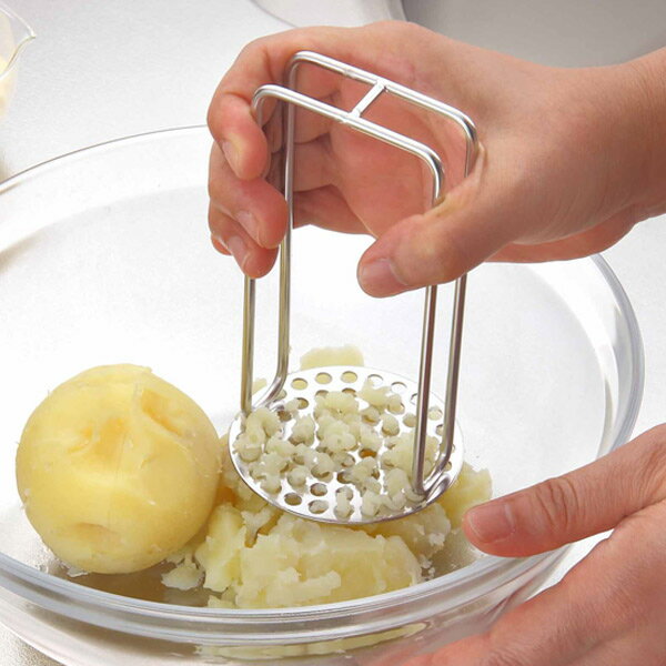 新潟県燕三条で作られているステンレス製のポテトマッシャーです。柄をしっかり握って使えるので、軽い力で押し潰せます。