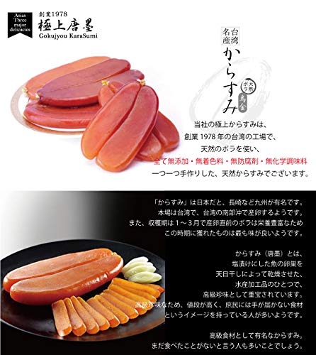 天然のボラから作成されたからすみなので味わい深くとてもおいしいうえに台湾産なので値段も抑えられています。