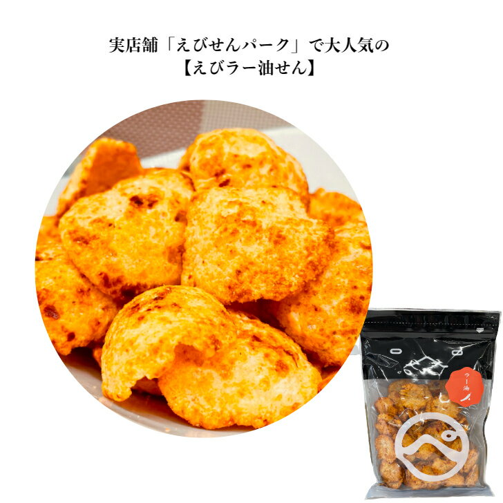 「えびせんパーク」の実店舗でも大人気のえびラー油せんです。オリジナルラー油ダレが後引く美味しさで、気が付いたら一袋なくなっていた、という癖になる味わい。隠し味のガーリックやアオサのバランスが絶妙です。