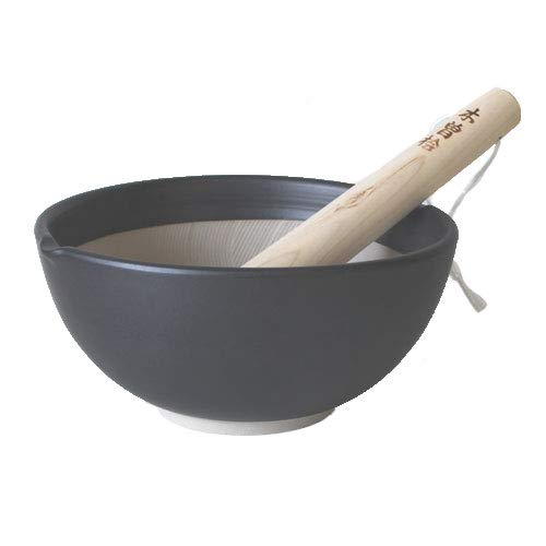 美濃焼のシックな黒色のすり鉢はいかがでしょうか。安定感のあるしっかりとしたフォルムもいいと思います。