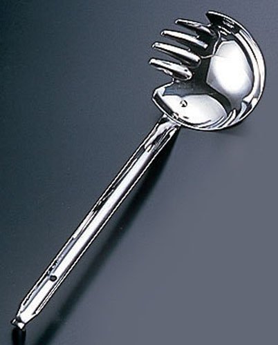 オールステンレスのうどんお玉で、洗いやすいし、錆びに強く、お手入れが簡単です。先がくしのようになっているので、うどんをすくいやすいです。一家に一つあると便利です。