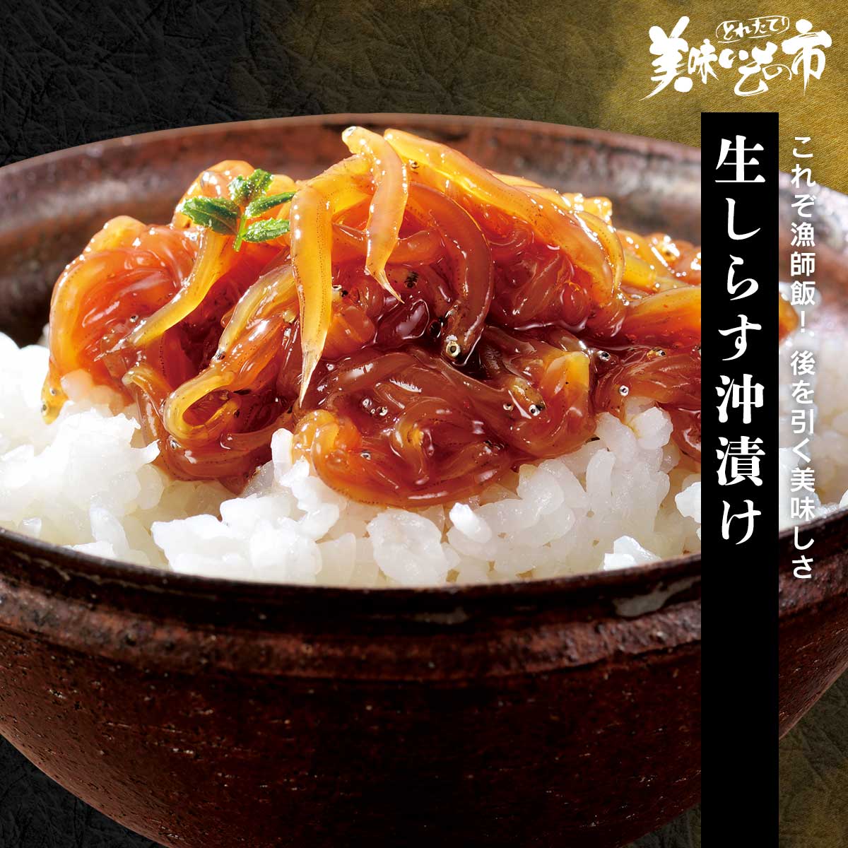 こちらの生しらすの沖漬けはいかが。静岡で水揚げされた新鮮なしらすを使用し、しらす本来のプリプリでツルッとした食感に醤油の甘辛さは白いご飯にもぴったり。そのままお酒のつまみにもいいですよ。