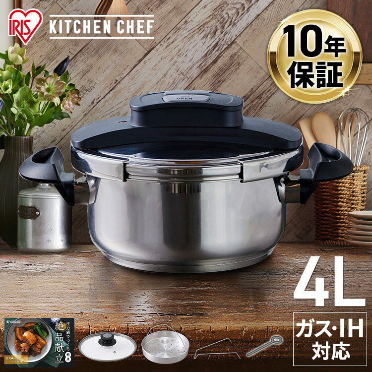 アイリスオーヤマ製の圧力鍋です。ガスでもIHでも使えて安心ですよ。両手タイプなので扱いやすいです。4Lサイズです。