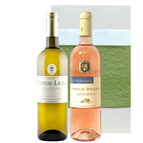 フランスワインの白、ロゼ(各750ml)のセットは如何ですか。白ワインは、ボルドー地方の「シャトー・ローレ」。樹齢50~60年の古木の果実を使用。旨味が凝縮しており、アロマを活かした仕上がり。ロゼワインは、南フランスのラングドック・ルーション地方の「ル・ヴィニャレ・ロゼ」。見た目も爽やか、ミネラル感があるのが特徴です。ご希望に添うラインナップだと思いますよ。