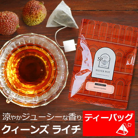 紅茶専門店・シルバーポットのフレーバードティー、クィーンズライチです。楊貴妃が愛したというフルーツ、ライチをイメージしたエレガントでジューシーな香り、スッキリとした飲み口の紅茶です。厳選したインド産茶葉を使用し、茶葉がしっかり開くテトラ型のティーバッグを採用しており、手軽に飲めるのに香りがとてもいいのがおすすめです。