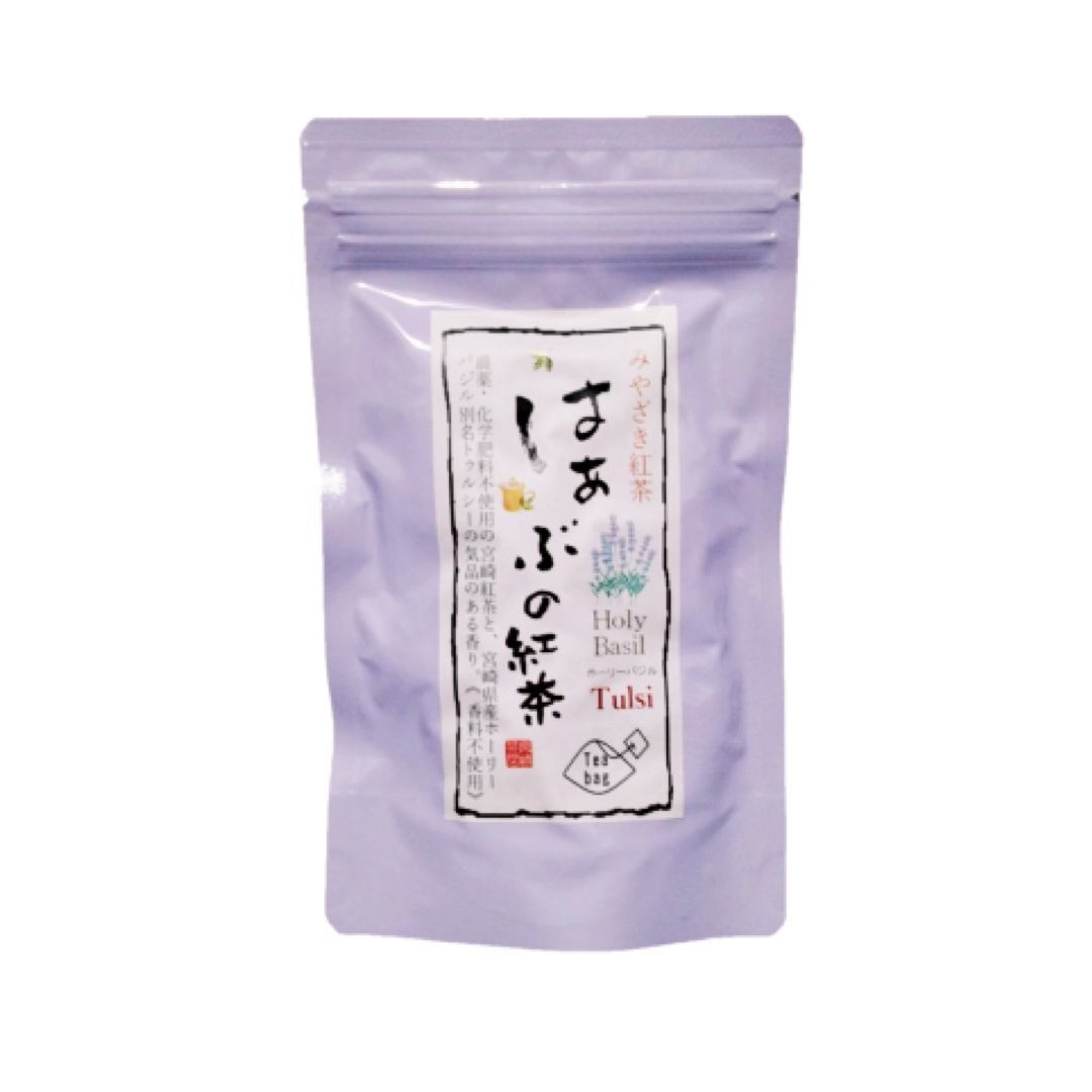 無農薬・有機栽培された宮崎県産の紅茶葉に、同じく宮崎県産のホーリーバジルを加えた香り高いトゥルシー茶です。ティーバッグタイプで気軽に飲めます。
