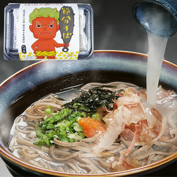 こちらの節分そばはいかが。パッケージが節分デザインで、可愛い赤鬼さん仕様です。国内産そば粉と国内産小麦を1:1でブレンドした生そばで、生そばならではのつるっとなめらかなのどごしが楽しめます。ざるそばでもかけそばでも美味しくいただける特製つゆ付。季節限定商品でなくなり次第終了なので、お早めに。