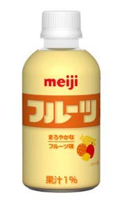 何とも言えない、とても甘くて美味しい 飲み物なのでお子様にも人気です 懐かしい形をした容器に入っています。 とても美味しいフルーツ牛乳です。