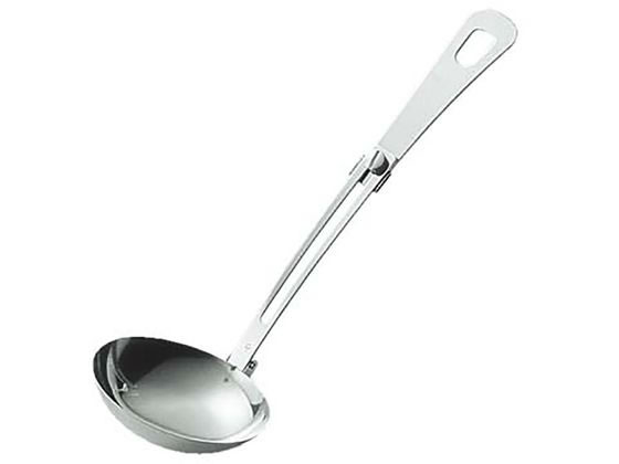こちらのキャプテンスタッグの折りたたみ式のお玉はいかが。コンパクトで持ち運びしやすく、使いやすい形状なのもいいです。日本製でステンレス製で高品質で、普段遣いやアウトドアにも役立ちますよ。