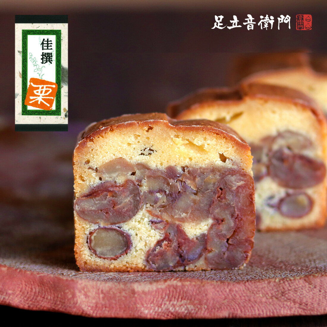 外でお会いになるなら、冷凍・冷蔵品はNGですね。季節柄、溶けやすいチョコレートを使ったお菓子も避けた方がいいと思います。常温で持ち運べ、賞味期限も1か月ほどと長く、お持ち帰りいただくのにもかさばらない足立音衛門の佳撰・栗のケーキはいかがでしょう。1本のケーキに栗を400gも使った超贅沢仕様の栗のパウンドケーキです。甘い物好きの方はもちろん、ワインにも合うスイーツなので、男性にも喜ばれると思います。
