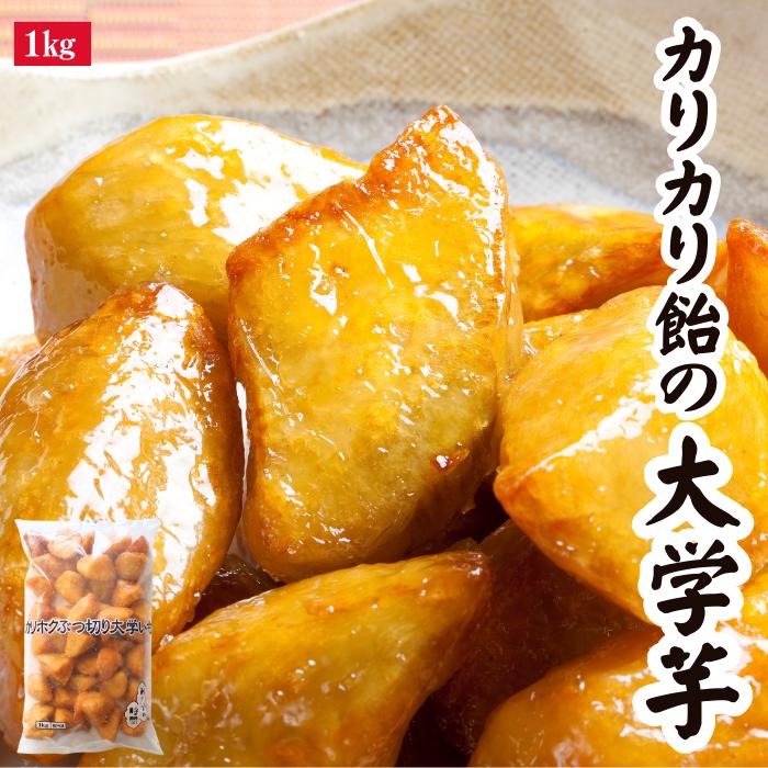 元祖カリカリ飴の大学芋です。「中華ポテト」の名前で愛され続けて半世紀のロングセラー商品。独自製法で作るオリジナルの飴がけにより、中はホクホク、外はカリカリに仕上がっています。業務用サイズの1㎏入りで、ファミリー向けにピッタリ。バラ凍結なので使いたい個数だけ取り出せます。30分ほどで自然解凍できますから、夕食の支度をする時に出しておくといいですね。