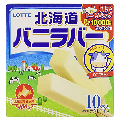 ロッテの北海道バニラバーはいかがでしょうか?箱入りで棒付きアイスキャンディーが10本入りです。時々買いますが細長い四角でちょこちょこ食べにいいですよ。ご家族用にも数があるのでお薦めです。ミルキーなや優しい甘さがありますがあとをひかない爽やかさもありおいしいです。食後のデザートがわりにもピッタリ!乳原料は100%北海道産使用しています。