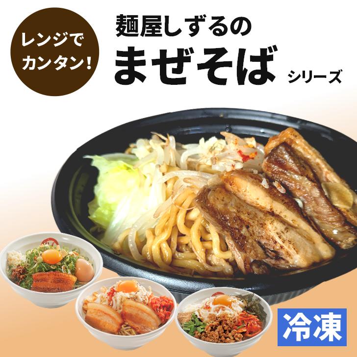レンジでカンタン!麺屋しずるのまぜそばシリーズです。愛知・三河を中心にチェーン店を展開する人気店の味が、レンチンで手軽に楽しめる冷凍まぜそば。冷凍弁当スタイルなので、トレイごと温めてまぜるだけで食べられるのがいいですね。定番の肉汁まぜそば・濃厚ねぎまぜそば・台湾まぜそばの3種類から選べます。