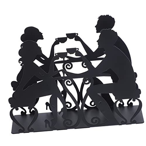ブラックのアイアン製のコーヒーフィルタースタンドはいかがでしょうか?男女がCAFEでコーヒーで乾杯しているようなシルエットデザインで素敵です!単色の黒なのでどんなインテリアにもよく合います。両面同じモチーフがあり間にペーパーを入れるようになっています。白やベージュのペーパーを入れるとモチーフのシルエットがはっきr浮かび上がりお洒落です。上の方は指でめくるスペースがあり取り出しやすいですよ。