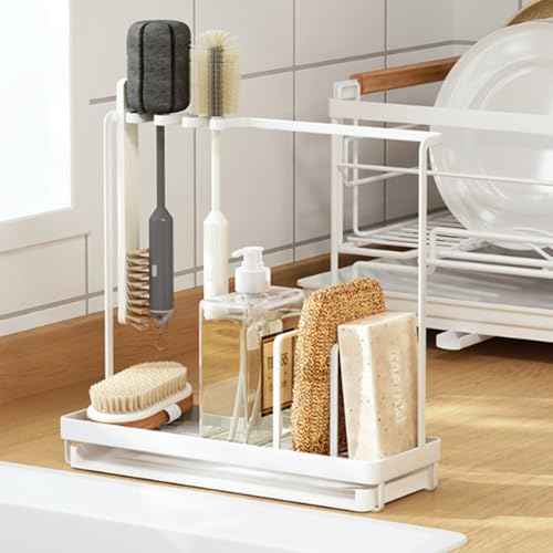 キッチンの小物や洗剤をひとまとめにできる水切りラック、ホワイトスポンジフォルダーはいかがでしょう。軽量で防サビ加工の収納ホルダーです。
