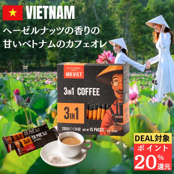 インスタントタイプのベトナムコーヒーはいかが。ベトナムコーヒーのオリジナルブランド、MR.VIETの3in1スティックカフェオレです。濃くて苦味の強いコーヒーに甘い練乳を入れるベトナム式コーヒーが、お湯を注ぐだけで楽しめますよ。観光名所のひとつホイアンに専門ショップがあるので、立ち寄りやすいと思います。
