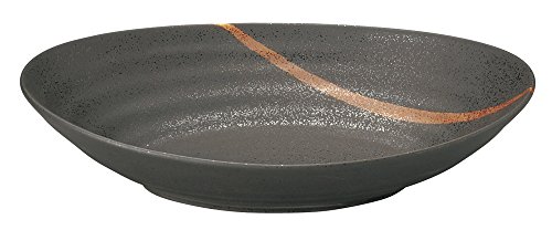 シックなブラックに銅色のラインが入った深皿です。しっかり深さがあるので汁気のある料理も安心して盛り付けることができ、シンプルで落ち着いた色調は食材の彩りを際立たせ、特に緑の野菜や赤い食材が映えますよ。和モダンなテイストで、煮物や和惣菜の色合いを引き立てながらも、洋食やサラダの盛り付けにも調和して、銅色のアクセントが料理に洗練された印象を添え、普段使いからおもてなしまで幅広く活躍してくれそうです。