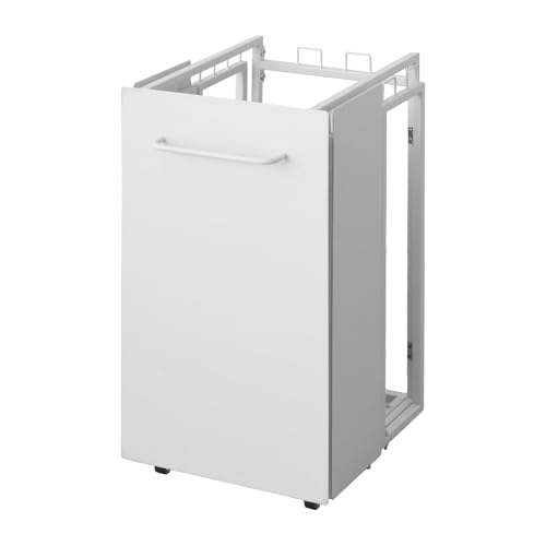 拡張式のキャスター付きダストワゴンはいかがですか。ゴミの量が多い時は、サイドのパネルを開いて拡張すると、こちらのSサイズで25Lから90Lに容量がアップします。ゴミ袋ホルダーって分別ゴミに使うことが多いと思うんですが、やっぱり丸見えだとキッチンも雑然としてしまうので、目隠しパネルがあった方がすっきりしますよ。