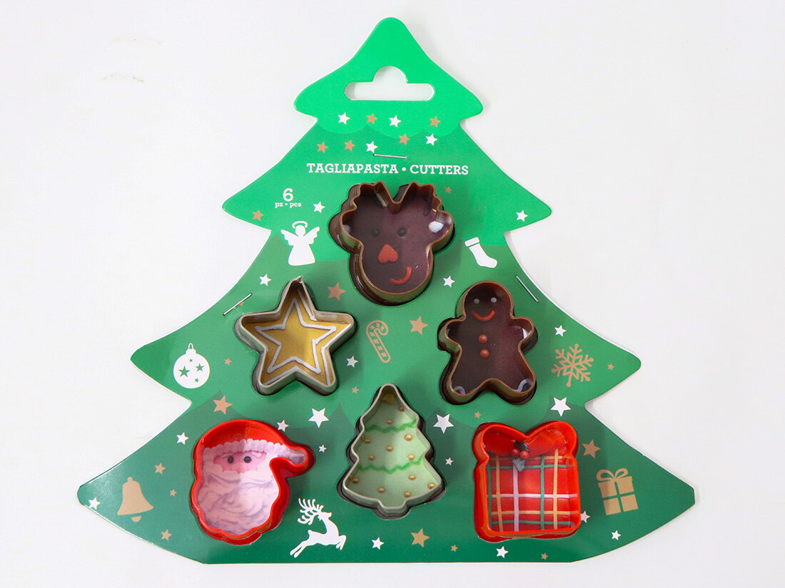 クリスマスモチーフのクッキー抜き型6個セットです。サンタ・トナカイ・ジンジャーマン・星・ツリー・プレゼントの6種類。アイシングやチョコペン、アラザン、カラーシュガーなどでデコると、もっと可愛くなりますよ。トナカイやジンジャーマンはココア生地、ツリーは抹茶生地のようにアレンジしてもいいですね。