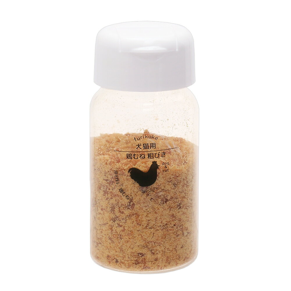 対象年齢生後6ヵ月~の犬猫用のふりかけです。国産胸ジャーキーを粗挽きで粉砕加工しています。無添加・無着色・保存料不使用です。