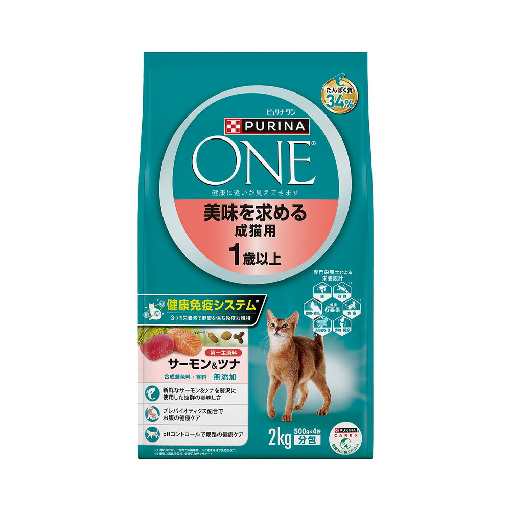 こちらのキャットフード ピュリナワンはいかがでしょうか。サーモン&ツナ味でネコちゃんも気に入ってくれると思います。たんぱく質や食物繊維、脂質など栄養バランスも◎ 2kgでお値段2千円台。コスパも良いと思います。