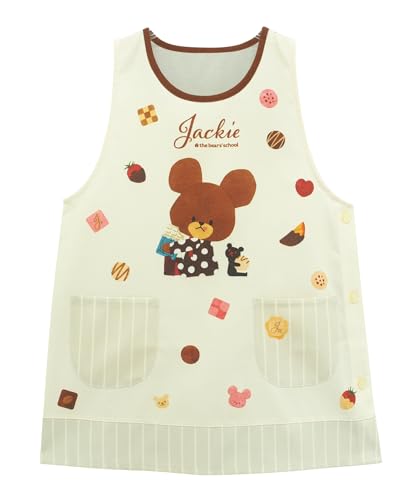 くまのがっこうのジャッキー刺繍とアップリケが可愛らしい、大人向けキャラクターエプロンです。サイドボタン仕様で着脱しやすく、速乾性とシワになりにくい素材でお手入れも簡単です。家事や料理が楽しくなるデザインと実用性を兼ね備えています。