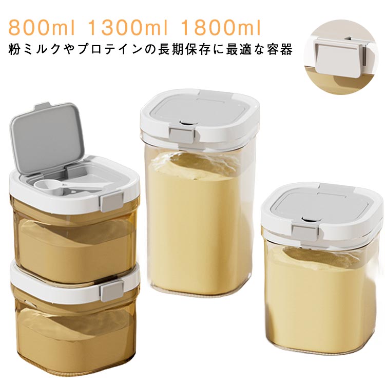 プロテイン・粉ミルクなどのストックに便利な保存容器です。茶色のデザインは遮光効果があります。蓋についているボタンを押すだけで密閉できます。