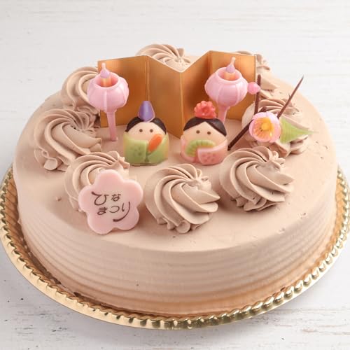 姪御さんたちがチョコレートが大丈夫な年齢でいらしたら、こちらの生チョコクリームのケーキはいかがでしょう。真ん中におひなさまとお内裏さまのお人形や屏風、ぼんぼりなどが載っていて、とてもかわいいデザインです。
