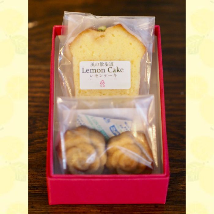 瀬戸内産レモンを使用したレモンケーキとフィナンシェ2個入りの詰め合わせです。お子様でも食べられる焼き菓子です。
