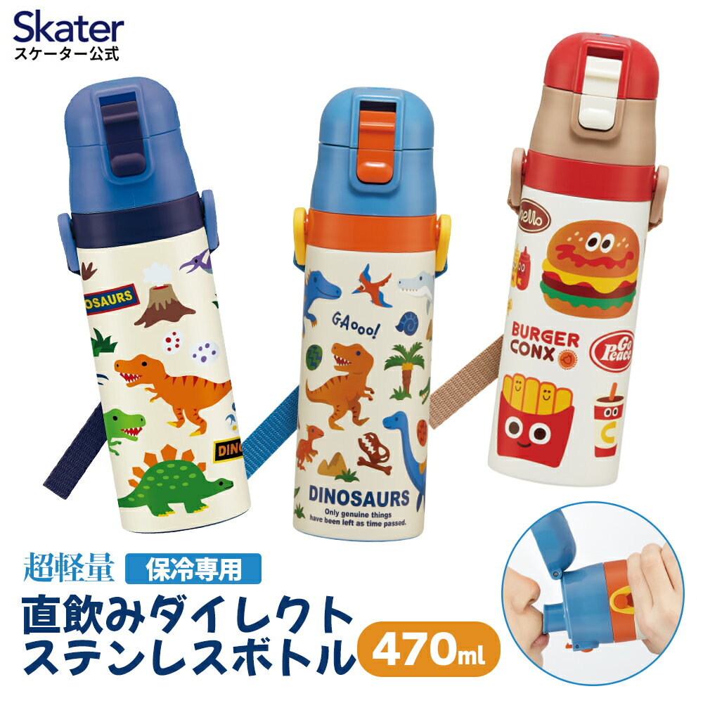こちらの、スケーターのキッズ用水筒は如何でしょうか?保温も保冷も効くステンレスボトルでワンタッチの直飲みタイプです。男の子に人気の恐竜デザインもありますよ。
