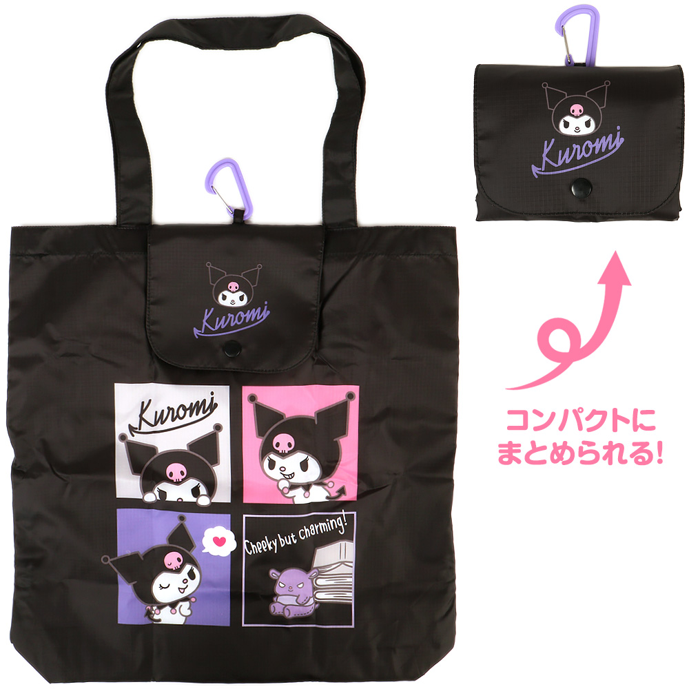 こちらのクロミちゃんのエコバッグはいかがでしょうか。撥水加工が施されているので雨でも安心。折り畳み式、カラビナ付きでバッグなどに付けて必要な時にさっと取り出せて便利ですよ。