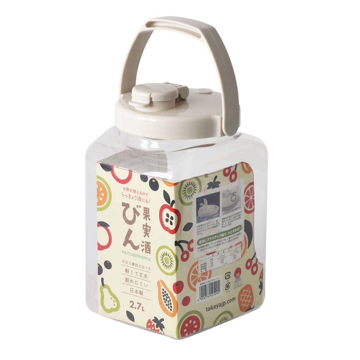 軽くて丈夫なプラスチック製で、重いガラス瓶に比べ出し入れや洗浄が驚くほど楽です。ガス抜き弁付きで発酵による破裂リスクを防げる点も機能的。角型なので冷蔵庫のドアポケットや棚に無駄なく収まり、デザインも現代的でおしゃれです。一方で熱湯消毒ができないため、アルコール除菌での対応が必要な点には注意してください。