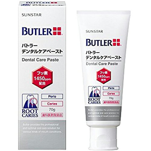 サンスターのバトラーデンタルケアペーストはいかがでしょう。大人のためのう蝕予防歯磨きで、シニアに起こりやすい歯肉炎・歯周炎・根元むし歯などのトラブルをトータルでケアします。薬用成分配合で、口臭予防もできますよ。