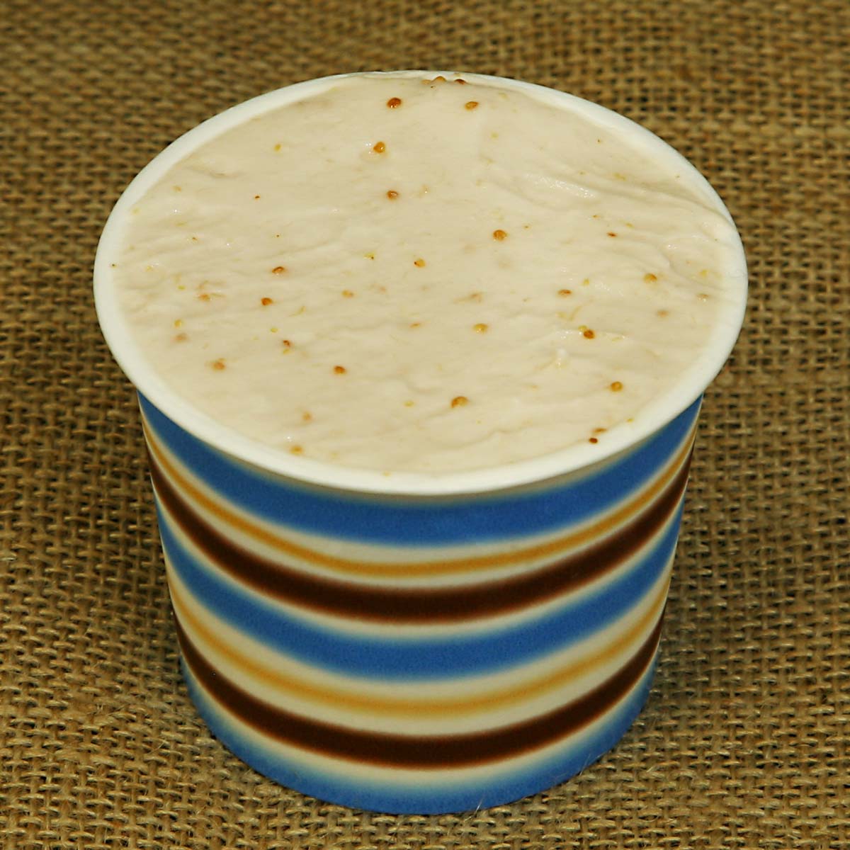 望月園芸のジェラートアイスクリーム、いちじく娘です。桝井ドーフィン種のいちじくをコンポートにしてから富士山麓の牧場の牛乳と合わせ、いちじくのねっとり感と種のプチプチ食感が楽しめるジェラートアイスクリームに仕立てています。いちじくの美味しさを前面に出すため、甘さはひかえめであっさり。いちじくの風味がふんわりと広がります。